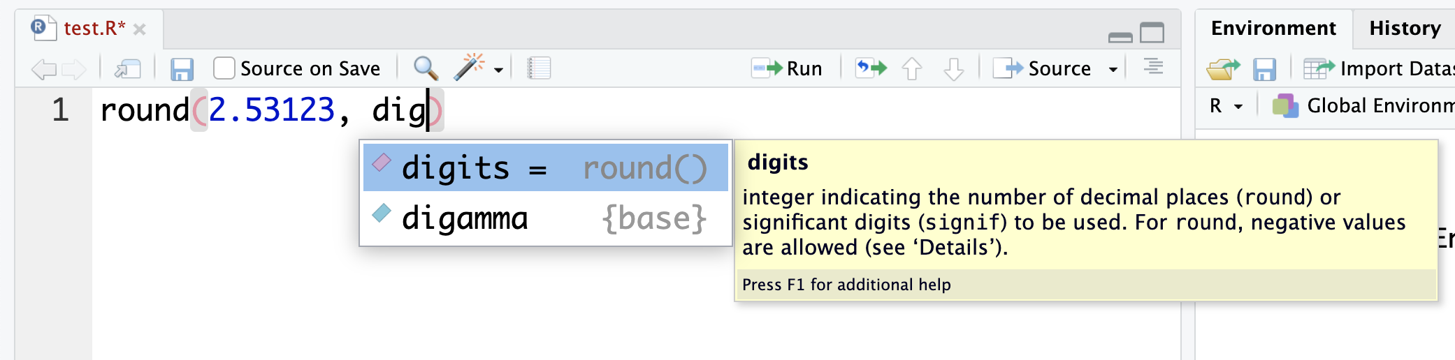 The code # test 1+1 is a comment, because it starts with a #. This means R ignores it: if you run this code, you won’t see any output in the console.