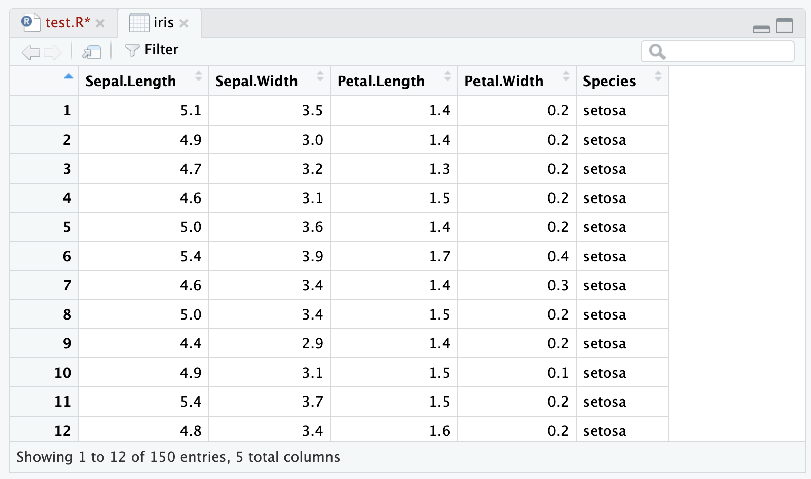 It also tells us the number of rows (150) and columns (5) in the data, as well as the types of each column (<dbl> is short for double, which is a type of numeric data).