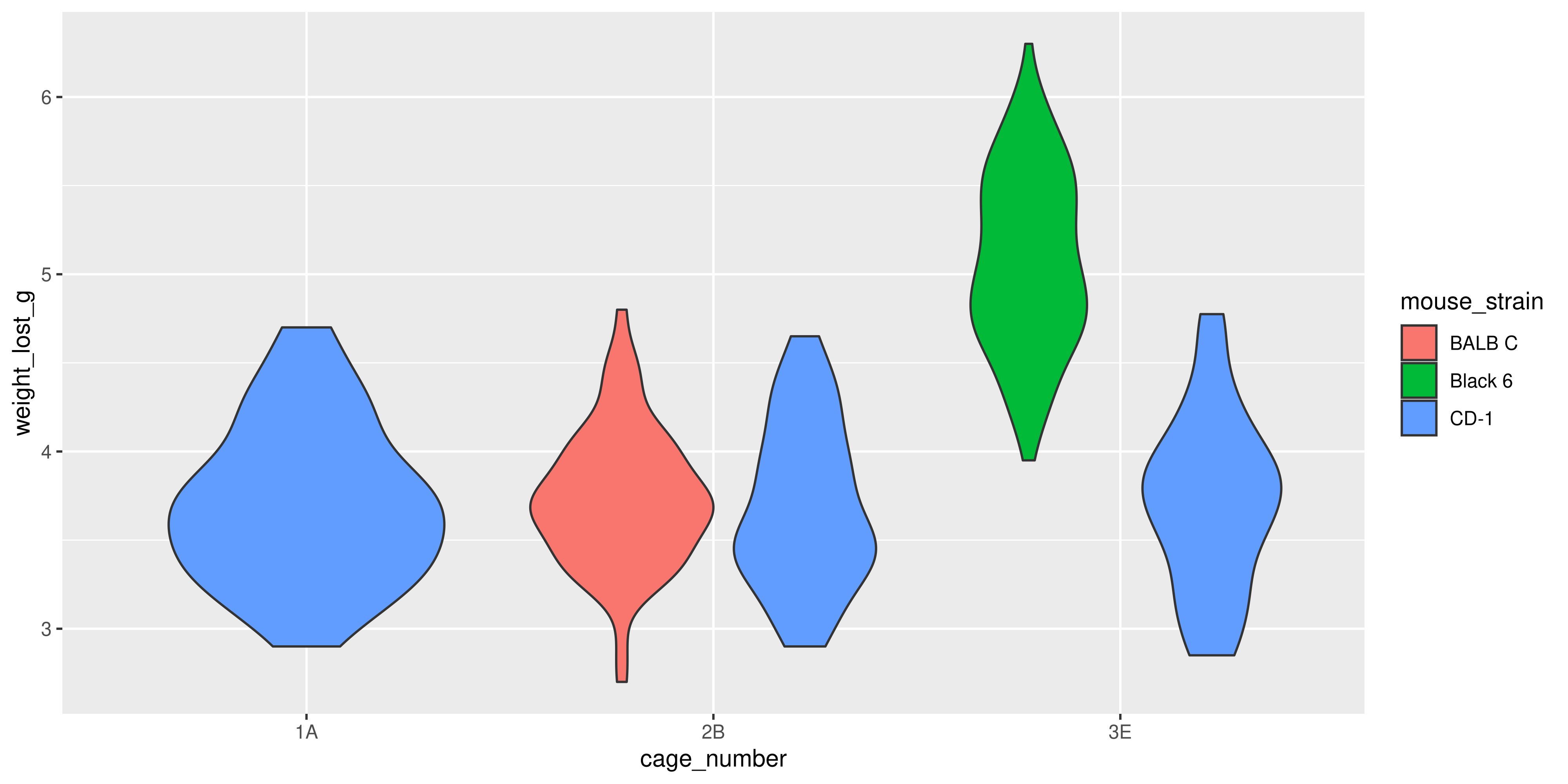 # you could also use aes(colour = mouse_strain) here to have the outline of the violin be the same colour as the fill